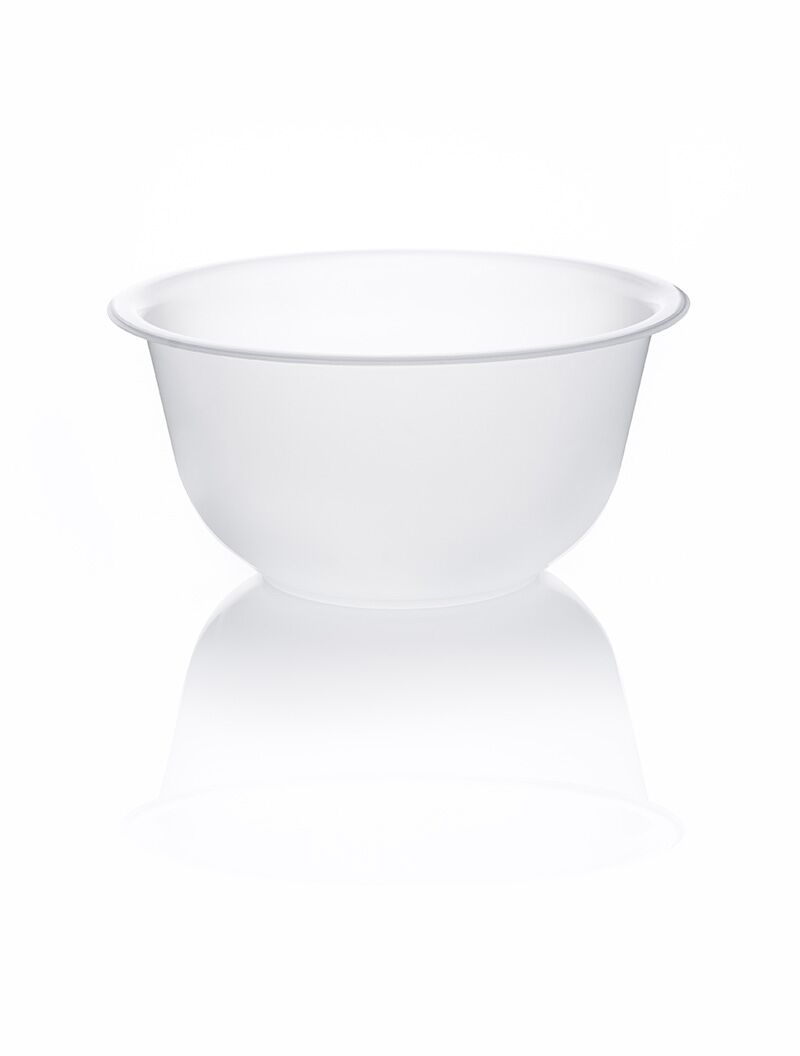 White polypropylene with flat bottom. -4ºF to 212ºF resistant. Dishwasher safe.
